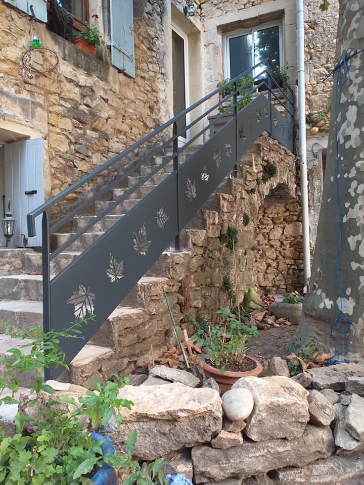 Conception et installation de garde-corps, main courante + portillon en fer forgé.