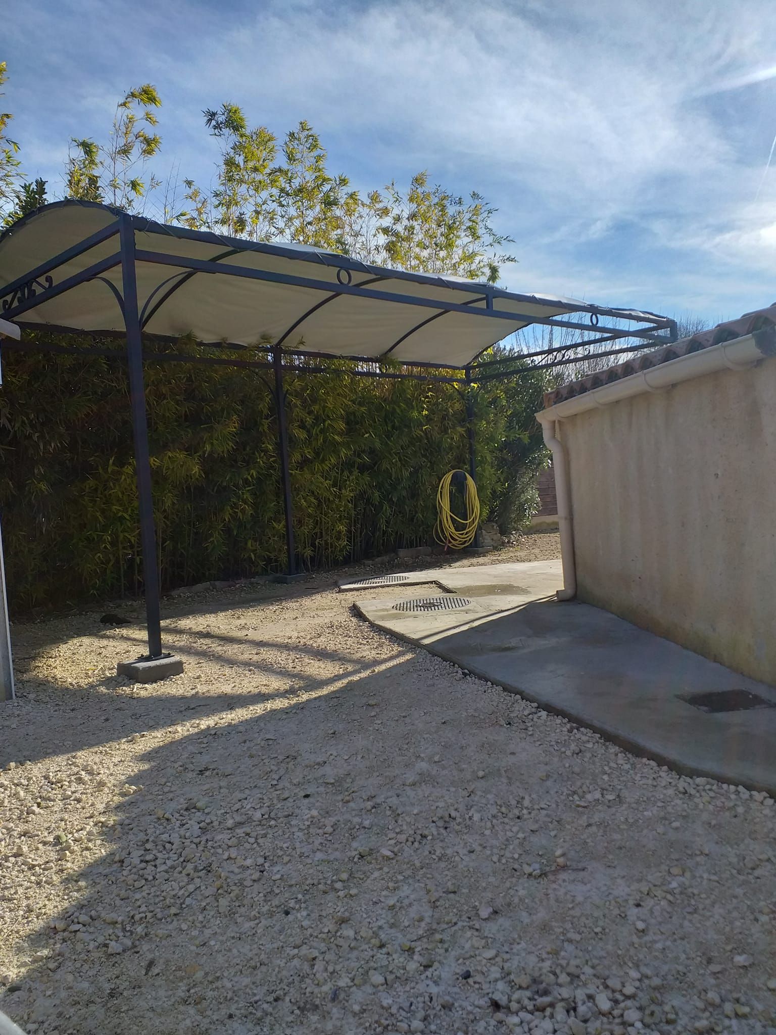 Fabrication et installation pergola avec toile tendue