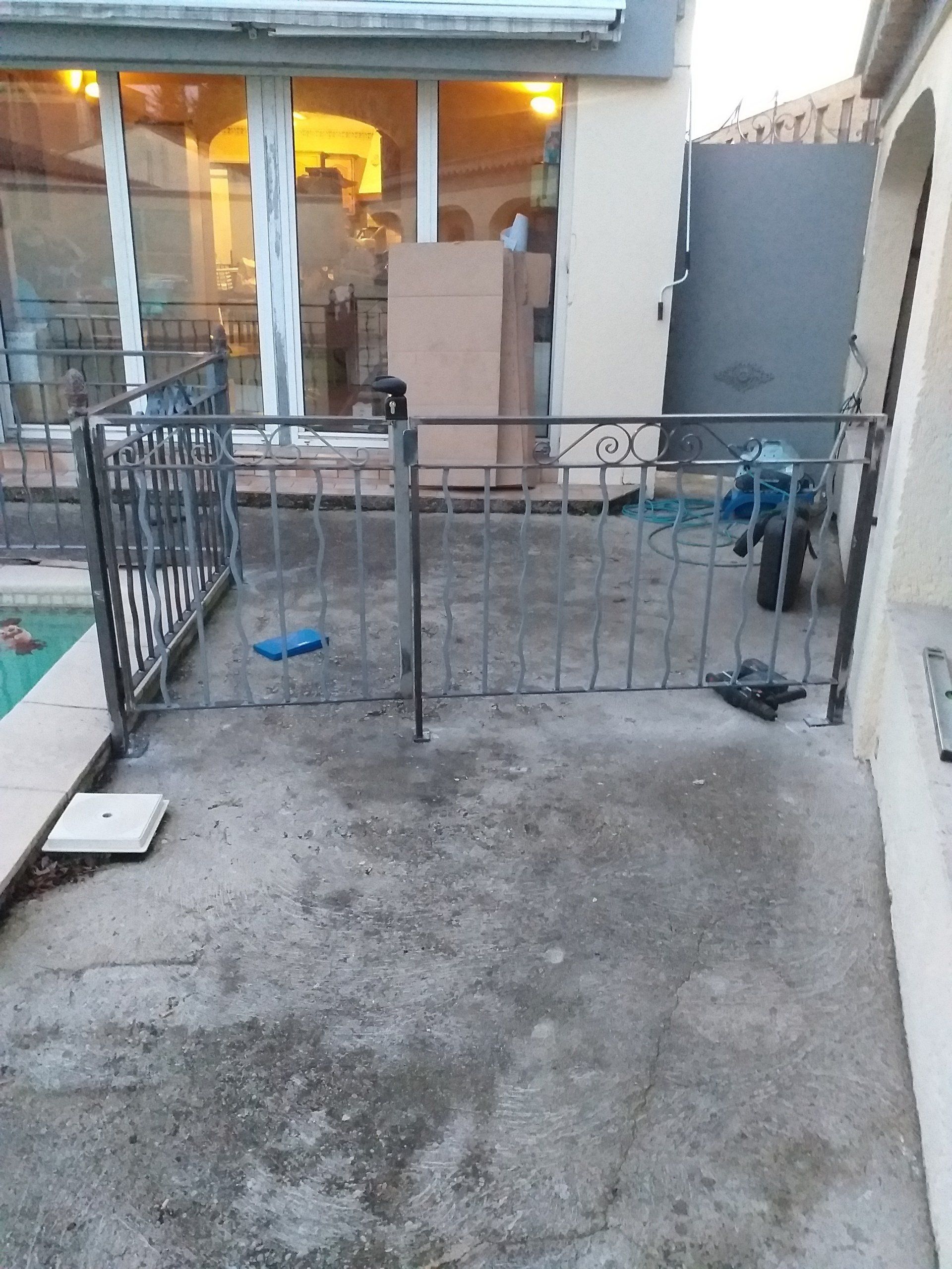 Fabrication et installation garde-corps accès piscine avec portillon et serrure sécurité enfants