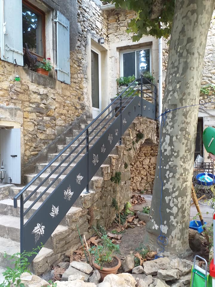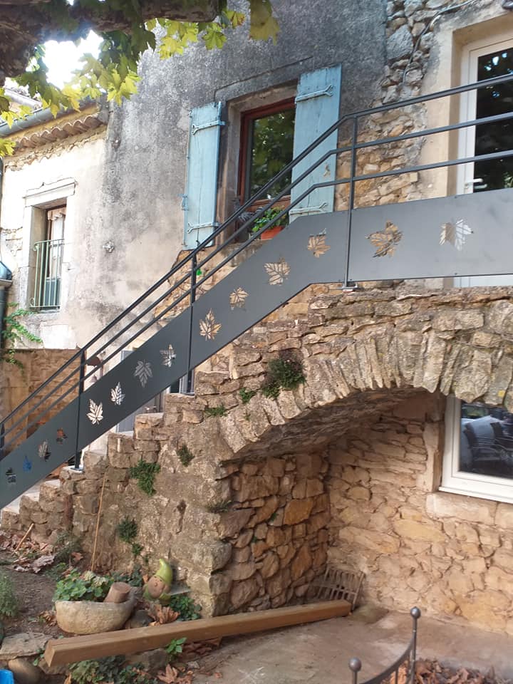 Conception et installation de garde-corps, main courante + portillon en fer forgé.