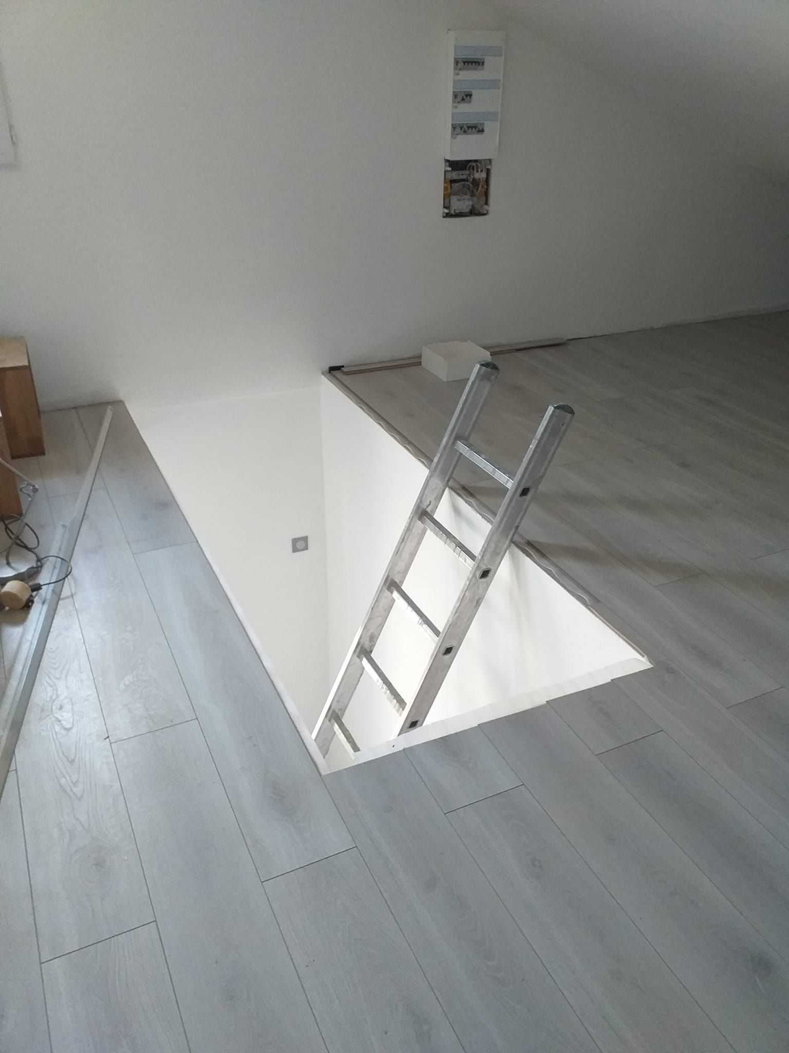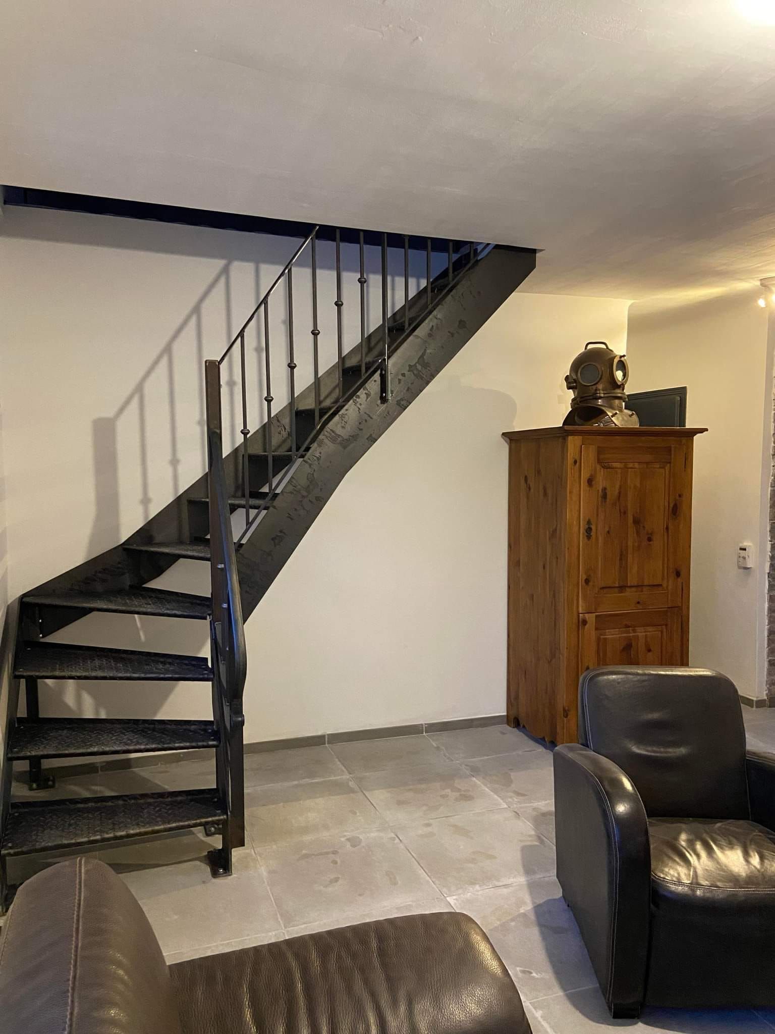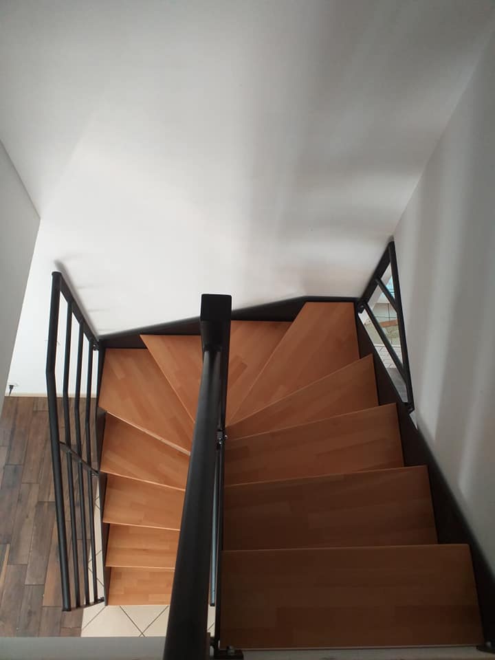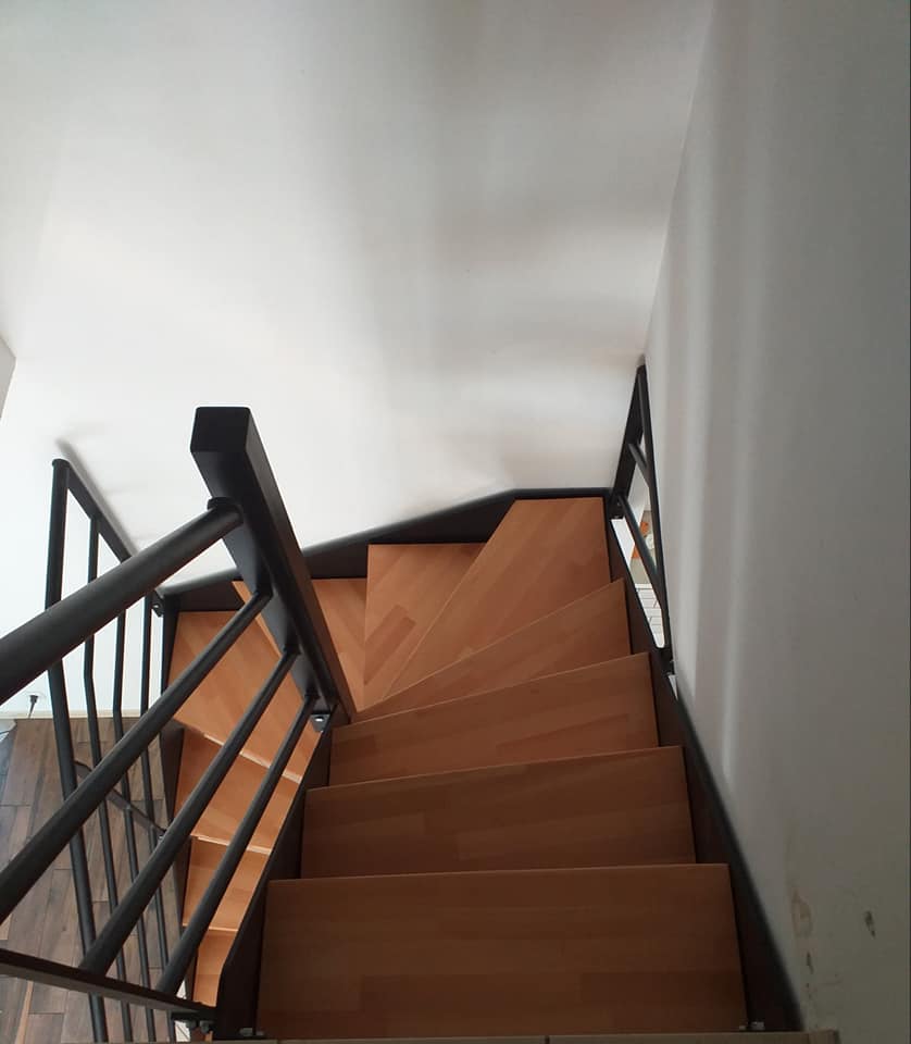 Conception et installation escalier quart tournant acier et bois double pallier.