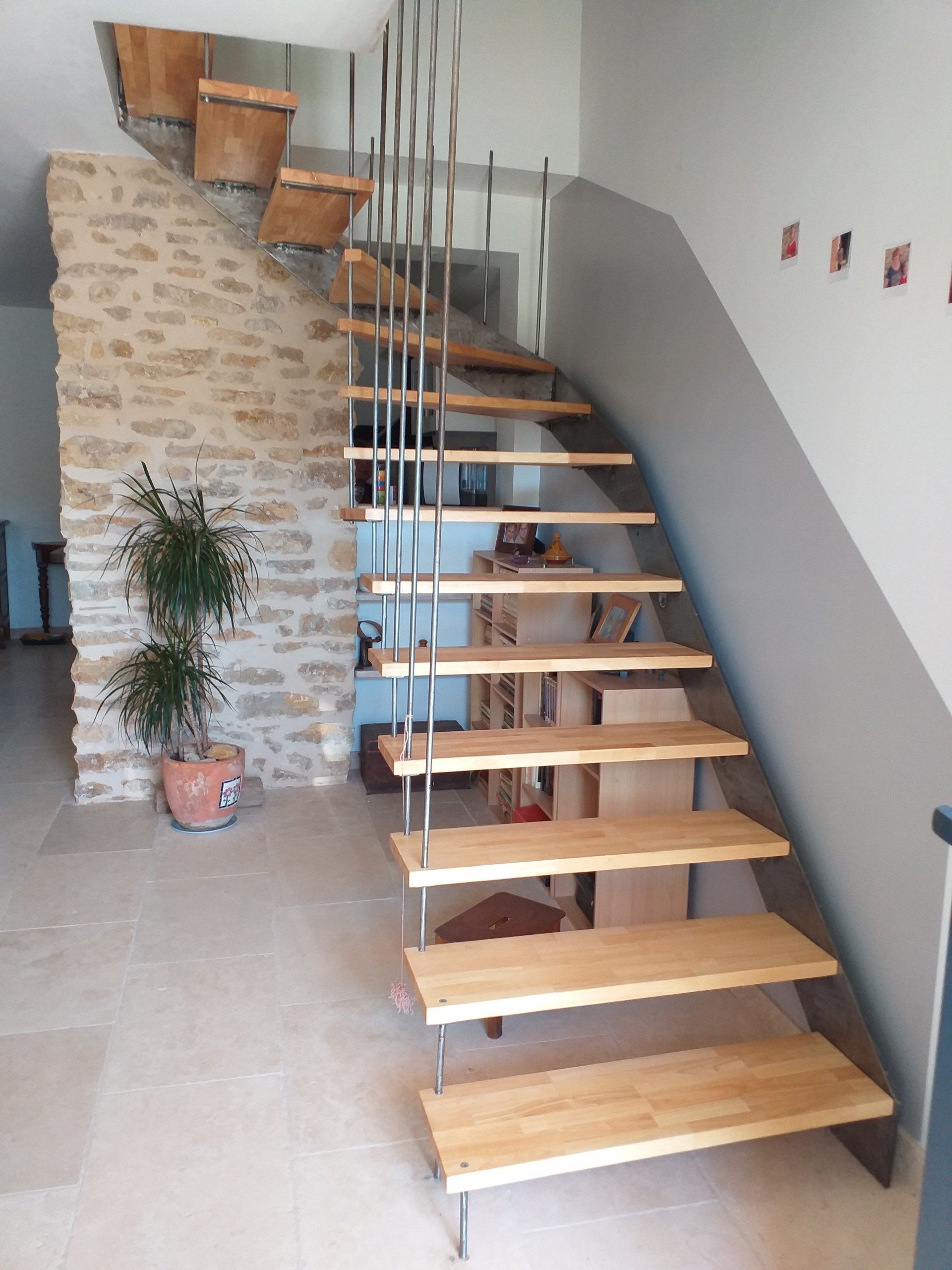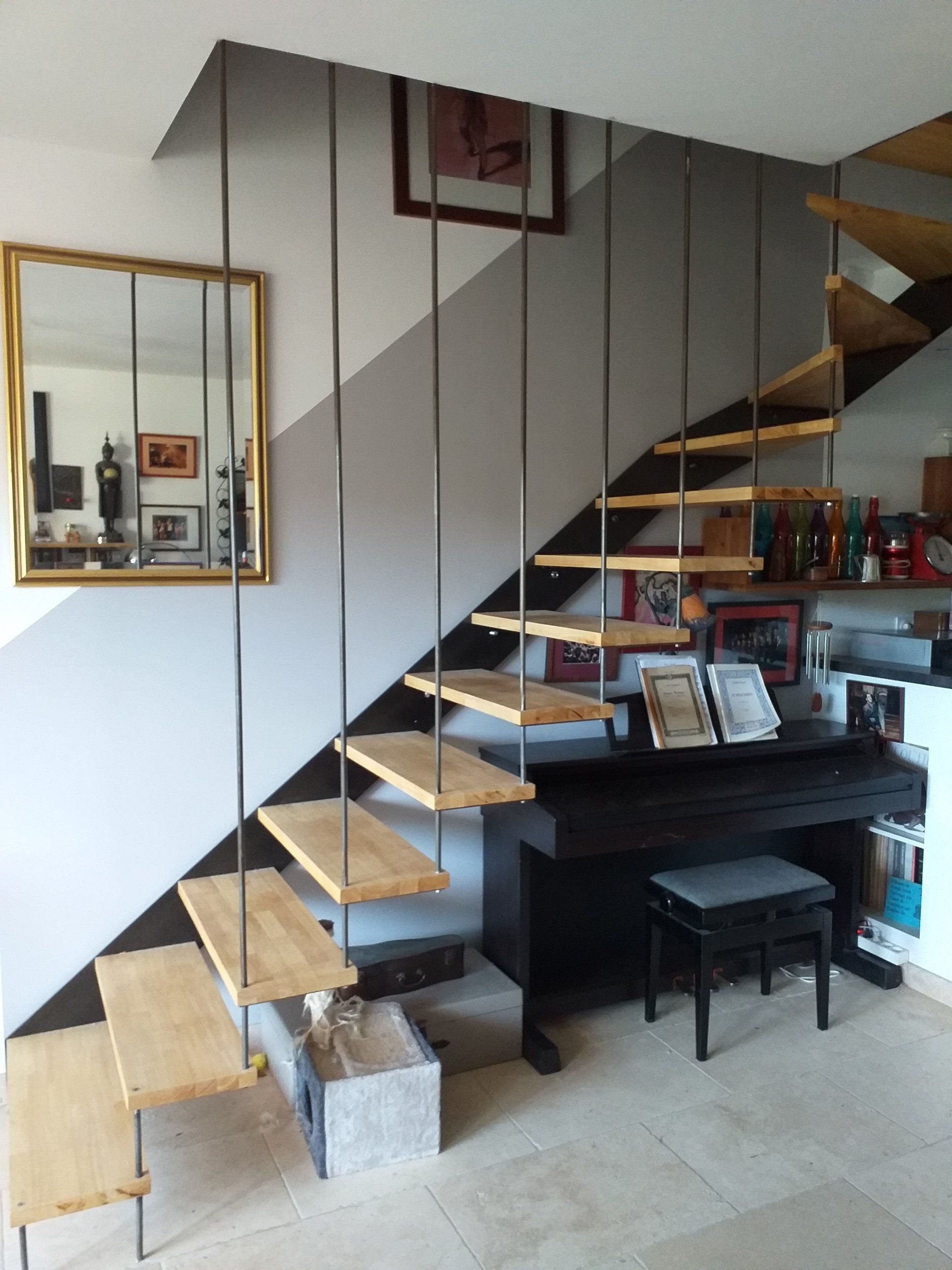 limon et suspente en acier, marches en hêtre massif 36mm.