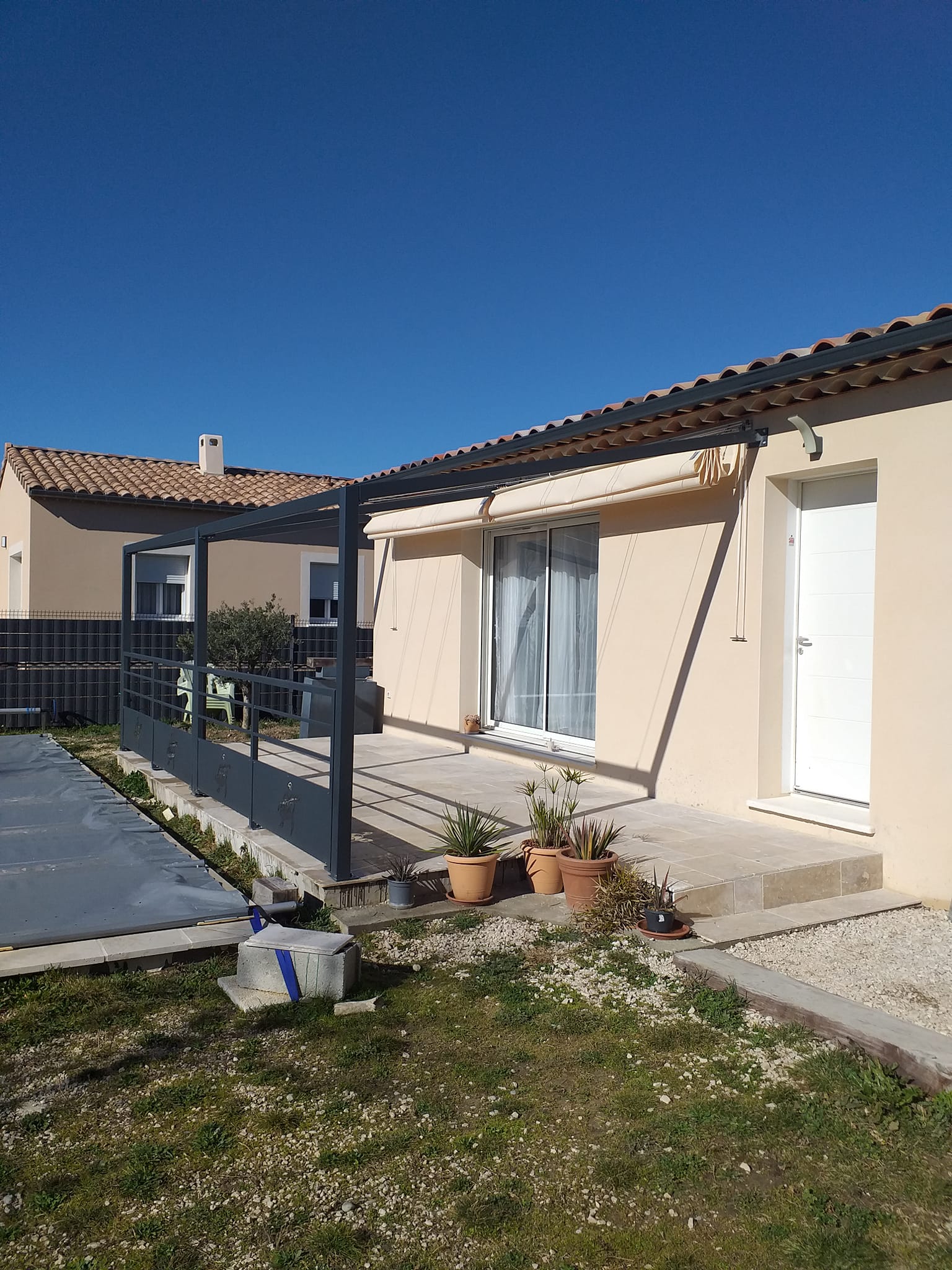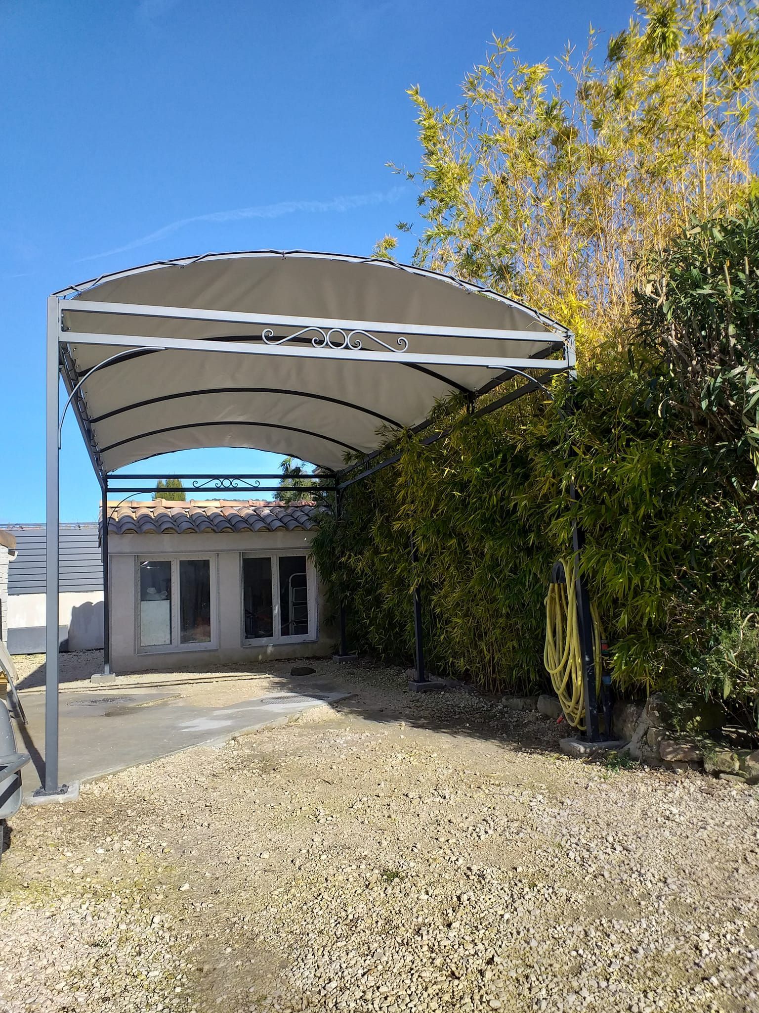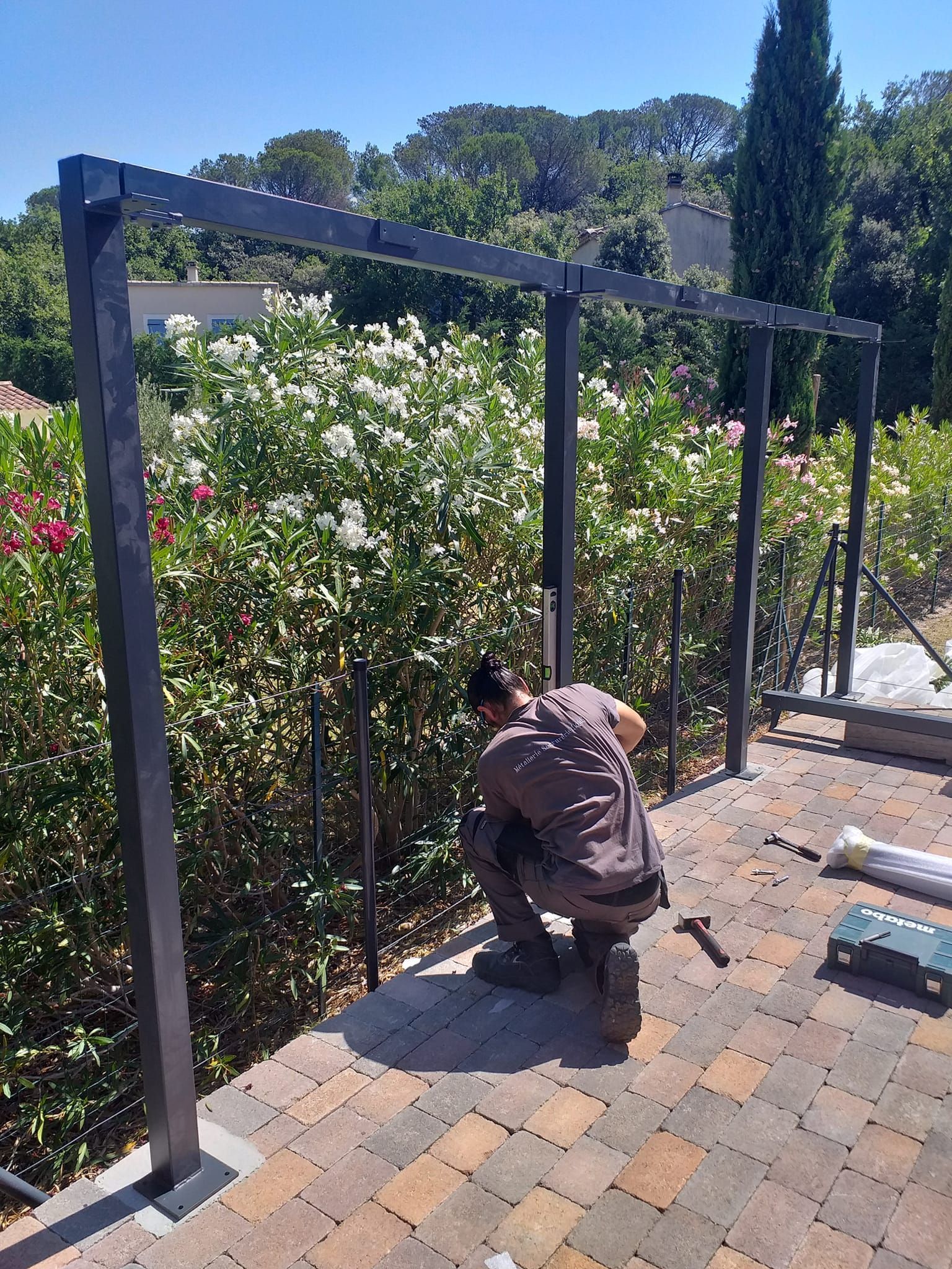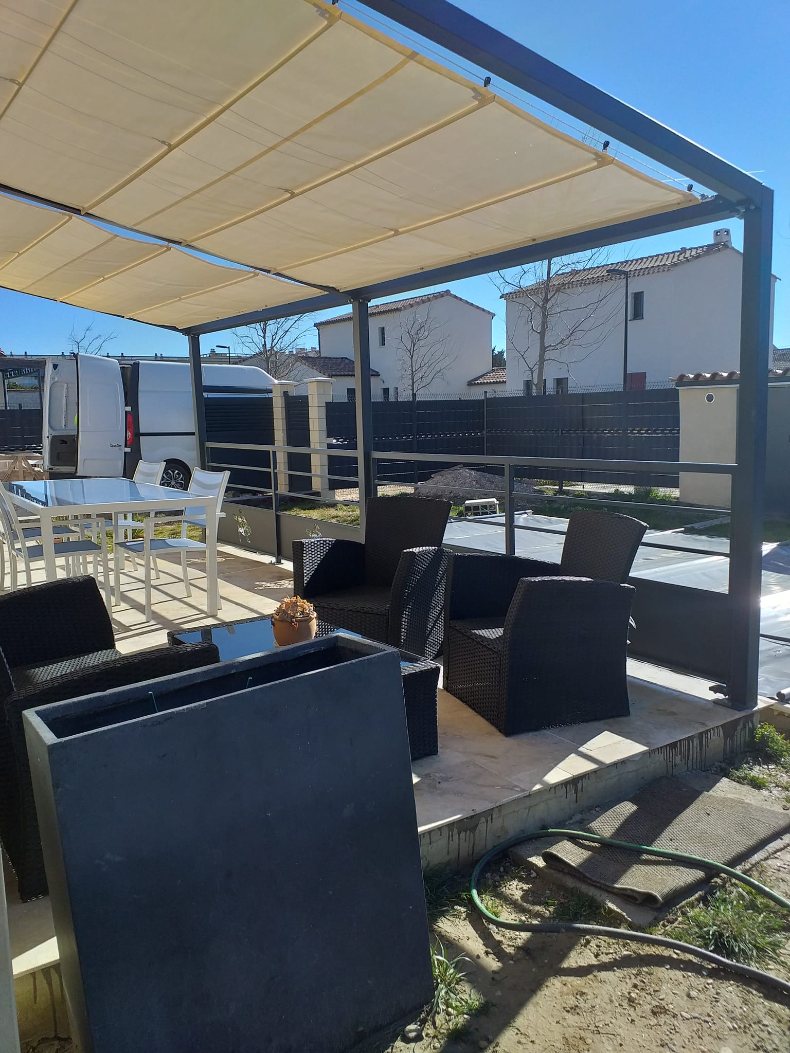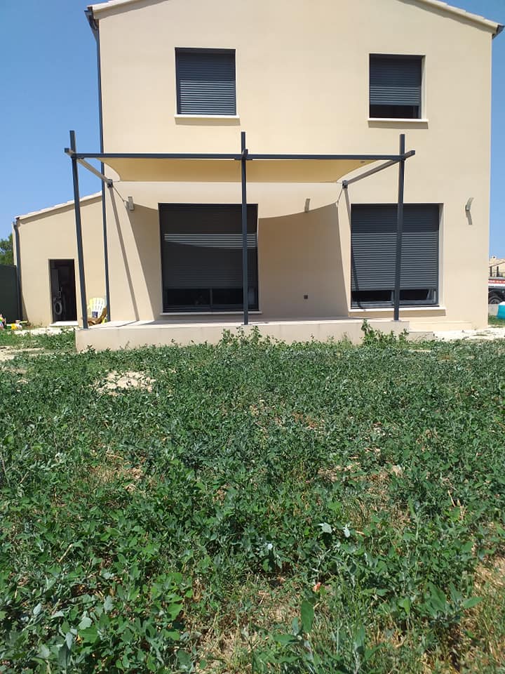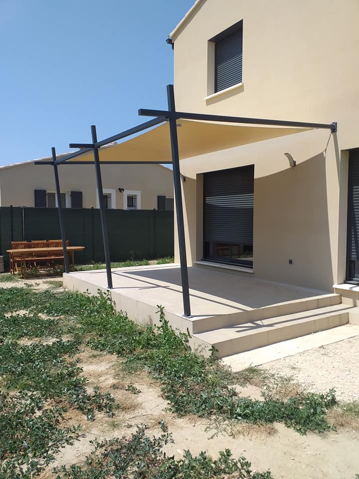 Fabrication et installation pergola avec toile tendue