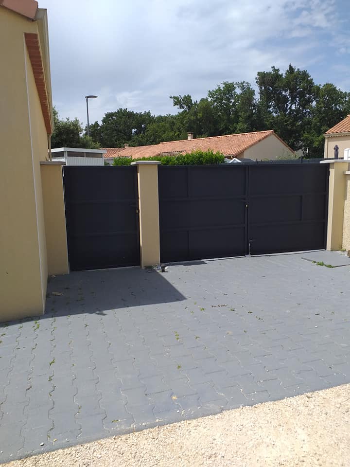 Fabrication et installation Portail double battants + portillon tôlé en pointe de diamant