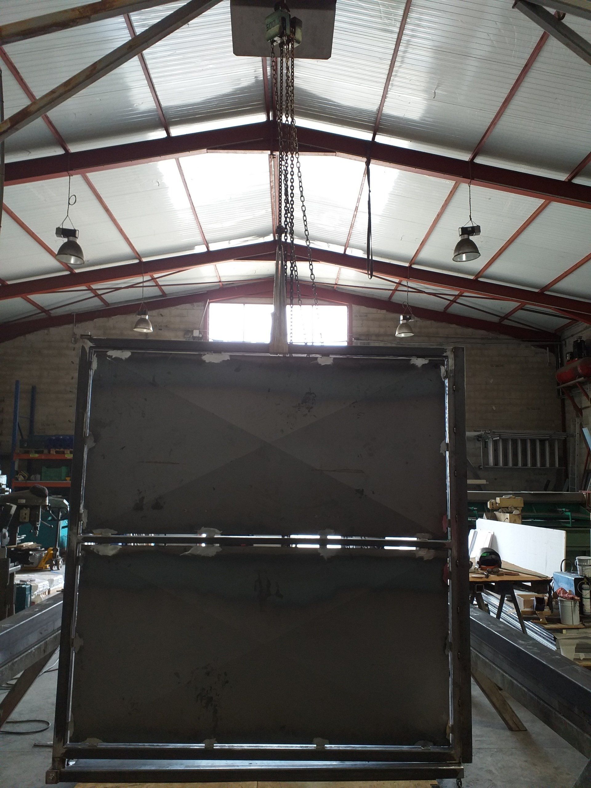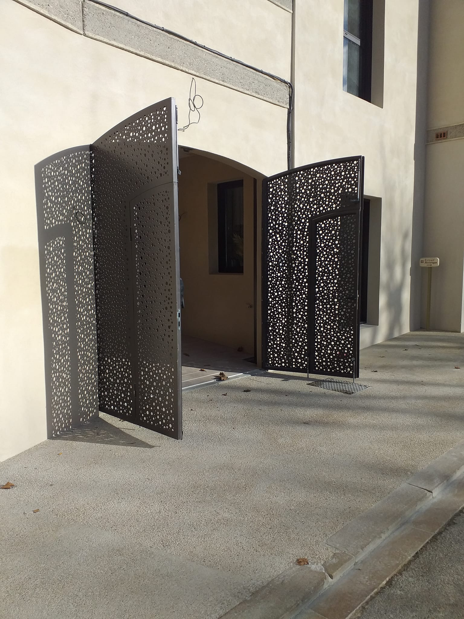 Portail à battants 4 vantaux tôlés effet bulles de champagne pour le restaurant " Le petit pois" à Bollène